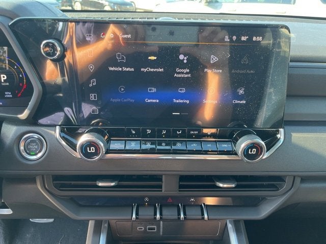 Preferred Equipment Group 0TR (Automatic Emergency Braking, Chevy Safety Assist, Following Distance Indicator, Forward Collision Alert, Front Pedestrian and Bicyclist Braking, IntelliBeam Automatic High Beam on/Off, and Lane Keep Assist with Lane Departure Warning), Technology Package (Adaptive Cruise Control, HD Surround Vision, and Rear Pedestrian Alert), Trail Boss Convenience Package II (4-Spoke Wrapped Steering Wheel, 8-Way Power Driver Seat Adjuster, Driver and Front Passenger Heated Seats, Evotex Seat Trim, Heated Steering Wheel, Power Driver Lumbar Control Seat Adjuster, Remote Vehicle Starter System, and Wireless Phone Charging), 4WD, 1st and 2nd Row All-Weather Floor Liner, 3 Years SiriusXM, 3.42 Rear Axle Ratio, 4-Way Manual Passenger Seat Adjuster, 4-Wheel Disc Brakes, 6 Speakers, 6-Speaker Audio System Feature, 6-Way Manual Driver Seat Adjuster, ABS brakes, Air Conditioning, Alloy wheels, AM/FM radio: SiriusXM with 360L, Apple CarPlay/Android Auto, Auto High-beam Headlights, Automatic temperature control, Black Lug Nut & Wheel Lock Kit, Black Nameplates, Brake assist, Cloth Seat Trim, Compass, Delay-off headlights, Driver door bin, Driver vanity mirror, Dual front impact airbags, Dual front side impact airbags, Electronic Stability Control, Emergency communication system: OnStar, Front anti-roll bar, Front Bucket Seats, Front Center Armrest, Front dual zone A/C, Front wheel independent suspension, Gloss Black Tailgate Lettering, Heated door mirrors, Illuminated entry, Low tire pressure warning, Navigation System, Occupant sensing airbag, Off-Road Assist Steps, Outside temperature display, Overhead airbag, Overhead console, Panic alarm, Passenger door bin, Passenger vanity mirror, Power door mirrors, Power steering, Power windows, Radio data system, Radio: 11.3 Diagonal Advanced Color LCD Display, Rear reading lights, Rear step bumper, Rear window defroster, Remote keyless entry, Security system, SiriusXM with 360L Trial Subscription, Speed control, Speed-sensing steering, Split folding rear seat, Steering Wheel Mounted Audio Controls, Steering wheel mounted audio controls, Tachometer, Tilt steering wheel, Traction control, Trip computer, Variably intermittent wipers, Wheels: 18 x 8.5 Black High Gloss Aluminum, Wheels: 20 x 9 High Gloss Black Aluminum, and Wireless Phone Projection.
